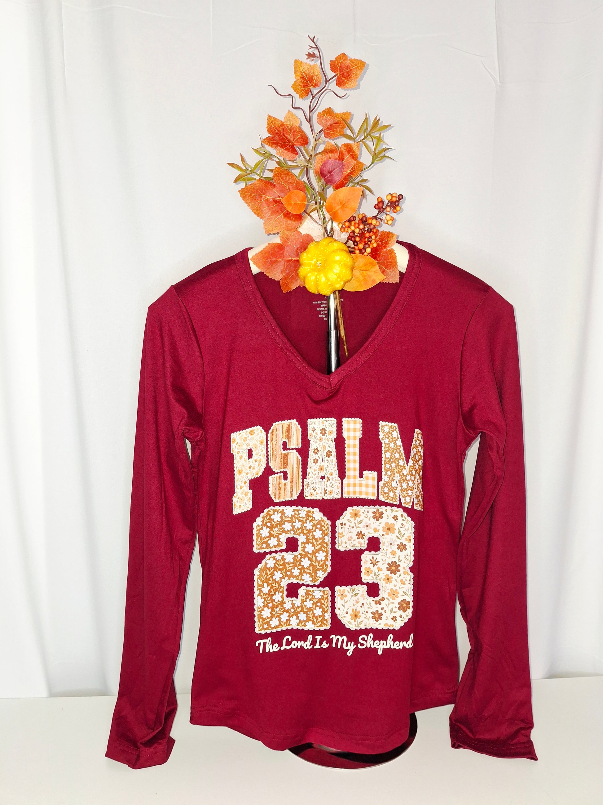 "Dale un toque de elegancia a tu guardarropa con nuestra camisa manga larga estampada con el salmo 23. Perfecta para el otoño, su diseño con colores otoñales simboliza la calidez y belleza de la temporada. Disfruta de la comodidad y estilo que ofrece esta camisa de alta calidad."