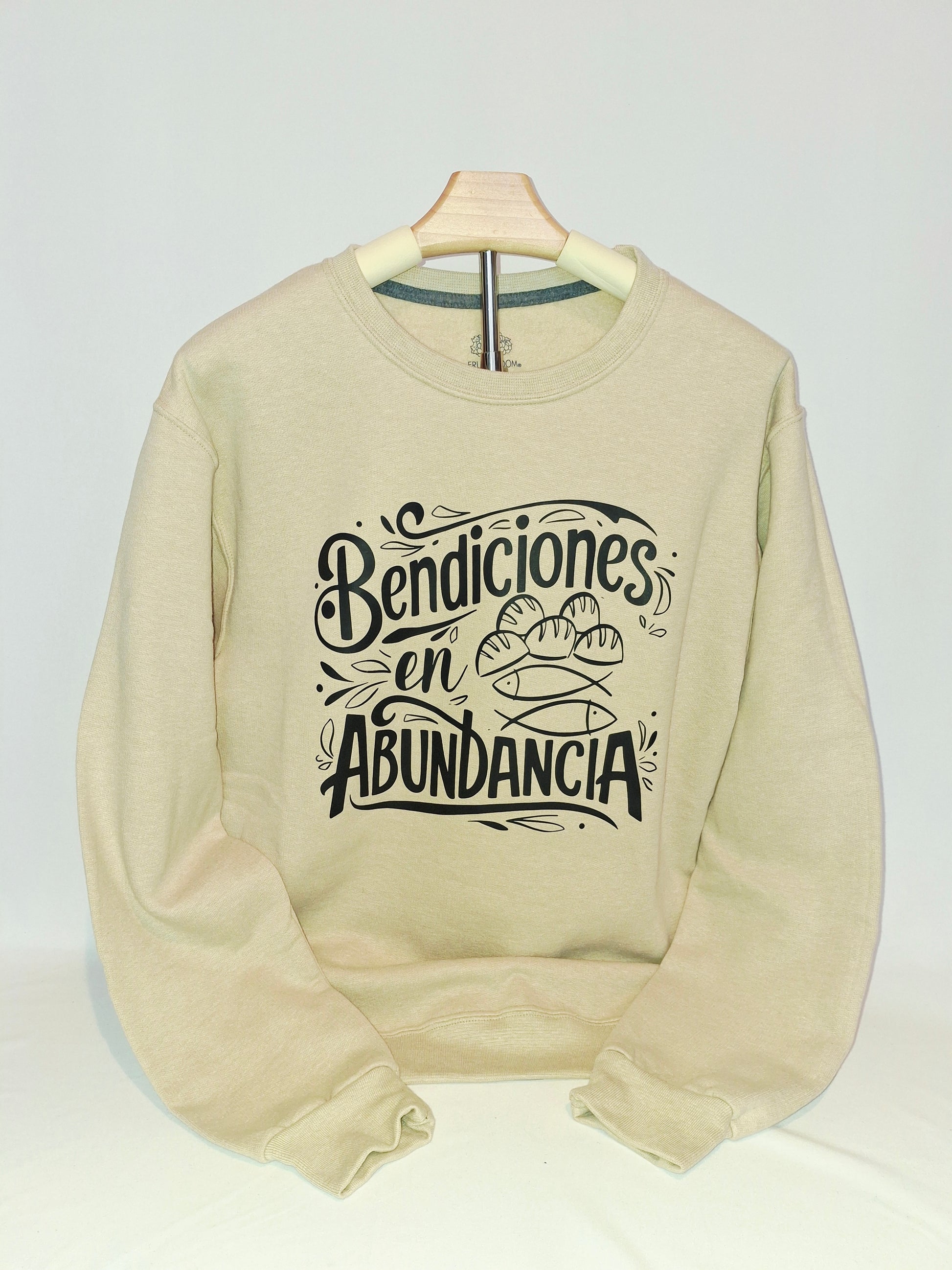 Este suéter unisex en color beige presenta un llamativo estampado en negro. Perfecto para hombres y mujeres, su diseño inspirado en la biblia agrega un toque único y significativo. Manténgase cómodo y a la moda con este suéter de alta calidad.